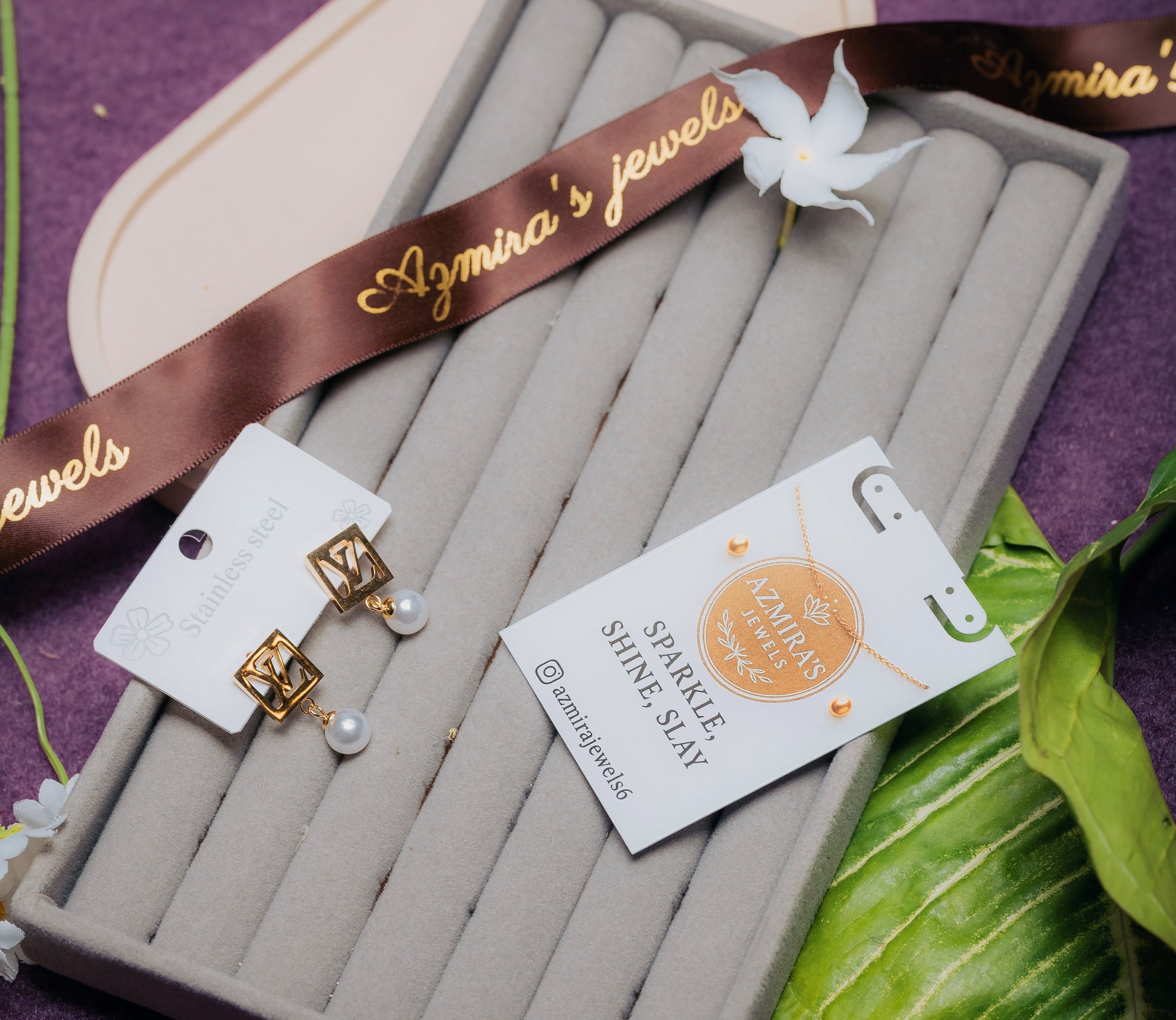 LV Inspired Pearl Earrings Stud Earrings with Pearl Drop – Stainless Steel | Azmira’s Jewels